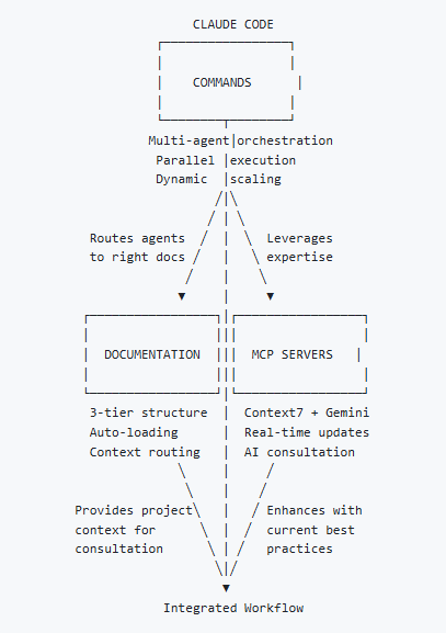 Вместо расплывчатых промптов вроде "напиши мне код", вы используете предопределенные команды, каждая из которых запускает сложный воркфлоу с несколькими специализированными ИИ-агентами.