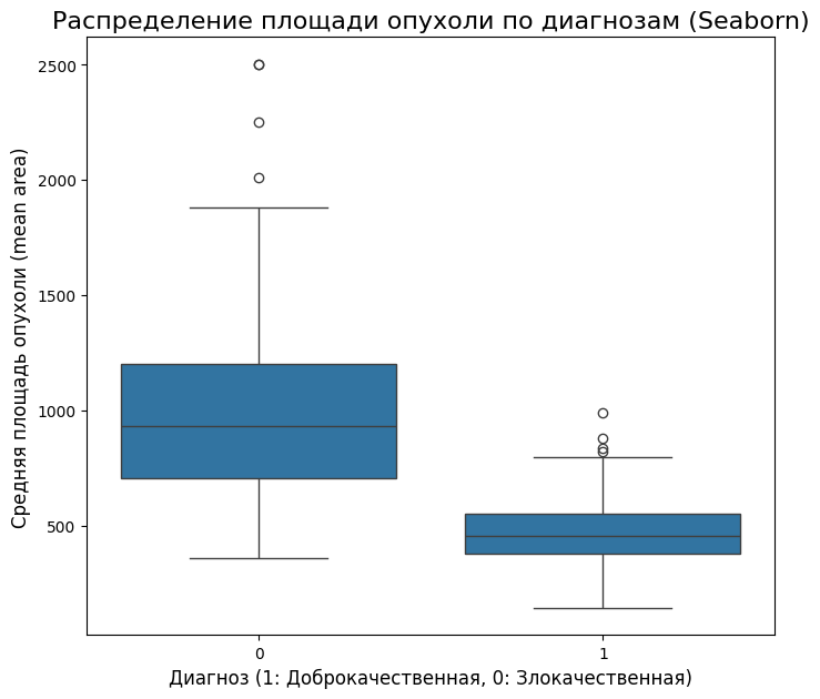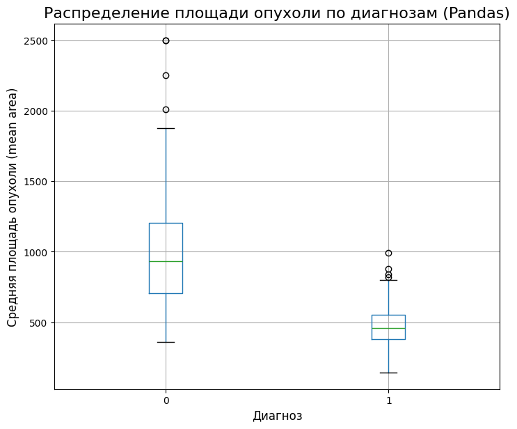 ax.set_ylabel('Средняя площадь опухоли (area_mean)', fontsize=12)